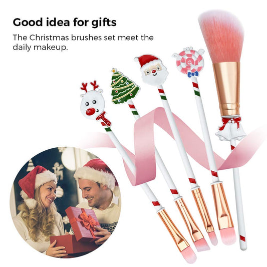 Christmas Makeup Brush Set | Eye | Face | Lip | Contour | Multi-Color | 5-Pieces | Special Holiday Bundle