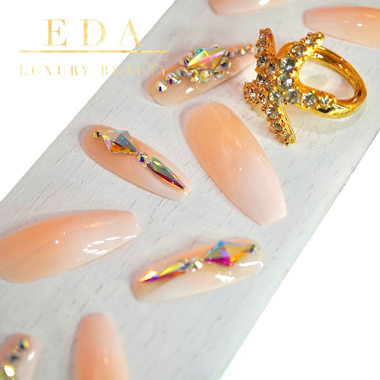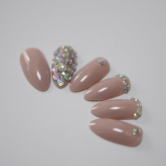 Sandy Sparkle | Diamond Nude | 3D Crystal Design | Nail Art | Glossy | Stiletto | Long | Reusable Press On Nails Set