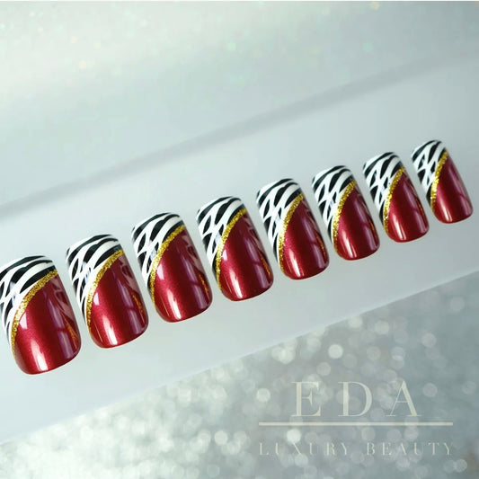Hot Zebra | Red Animal Print French | Glossy | Square | Long | Reusable Press On Nails Set
