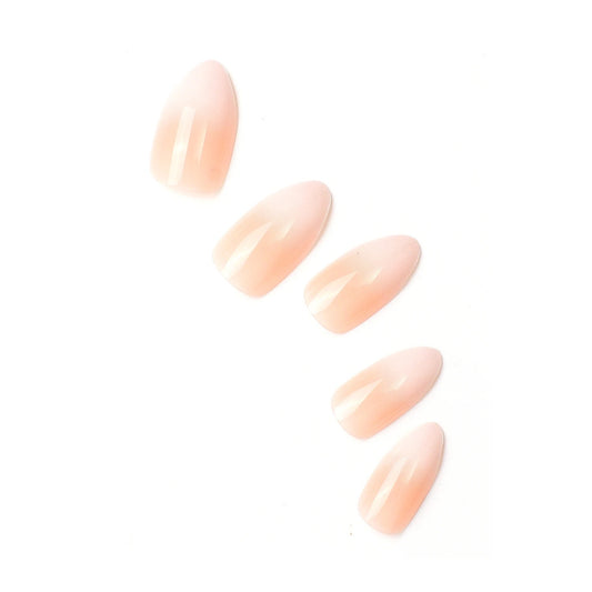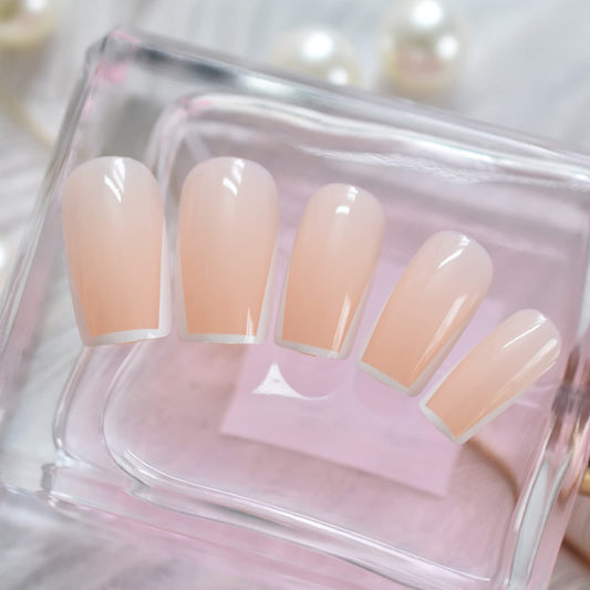 Simple Chic | Natural | Nude Pink, Ombre White French | Glossy | Ballerina | Extra Long | Reusable Press On Nails Set