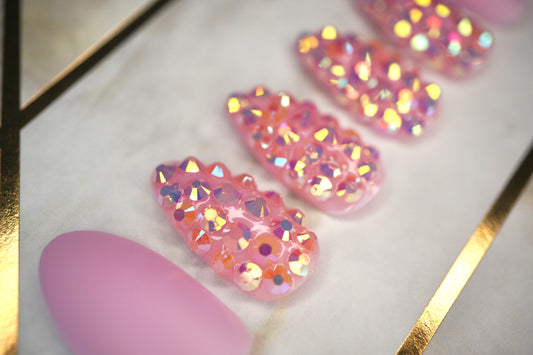 Bubblegum Sugar | Diamond Pink | 3D Crystal Design | Nail Art | Matte | Stiletto | Long | Reusable Press On Nails Set