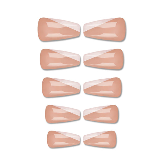Royal French | Natural | Nude Pink, White French | Glossy | Ballerina | Extra Long | Reusable Press On Nails Set