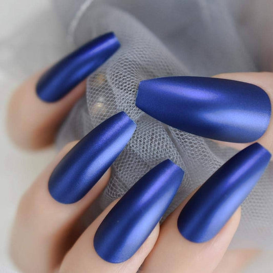 Midnight Sky | Navy Blue | Shimmery Matte | Ballerina | Extra Long | Reusable Press On Nails Set