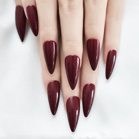 Maroon Magic | Red Burgundy | Glossy | Sharp, Stiletto | Extra Long | Reusable Press On Nails Set