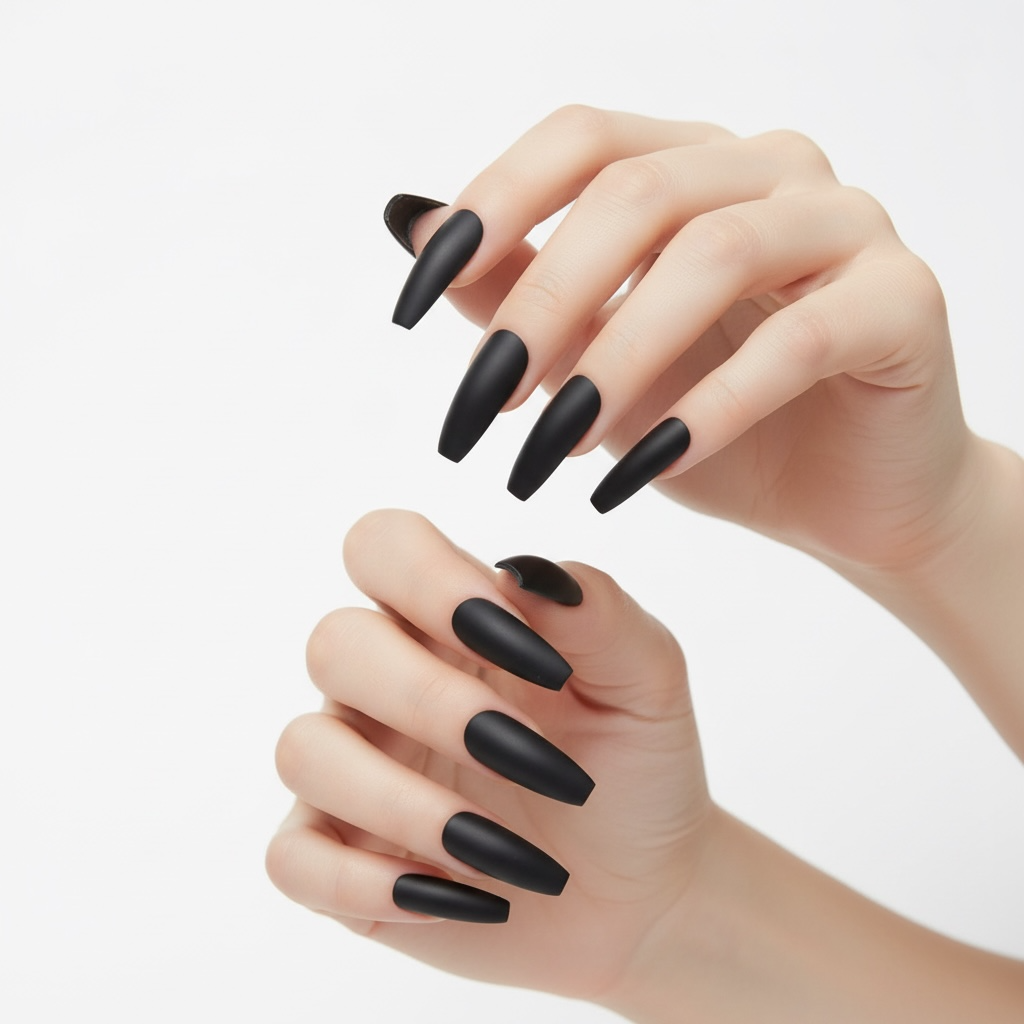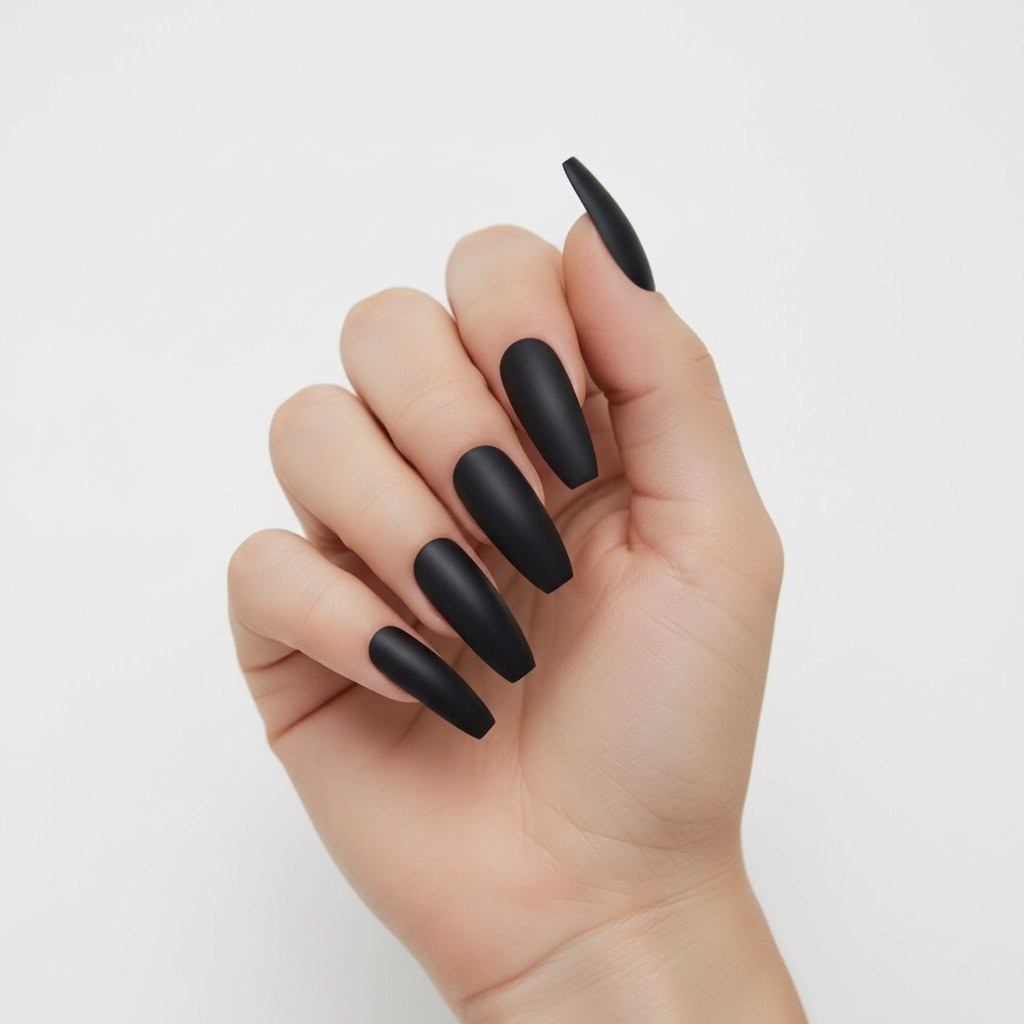 Drama Queen | Black | Matte | Gothic Design | Ballerina | Extra Long | Reusable Press On Nails Set