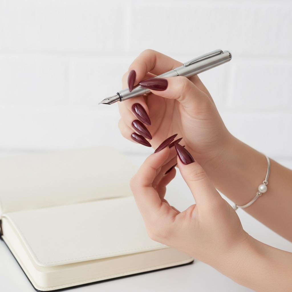 Maroon Magic | Red Burgundy | Glossy | Sharp, Stiletto | Extra Long | Reusable Press On Nails Set